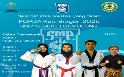 Selamat untuk prestasi yang diraih siswa siswi SMPN Negeri 1 Gemolong dalam seleksi POPDA Kabupaten Sragen Tahun 2025 dalam berbagai Cabang olahraga dan kategori Ca