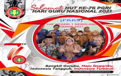 Peringatan Hari Guru Nasional ke-76 tahun 2021 di SMP Negeri 1 Gemolong Kegiatan Peringatan HGN - 76 diawali dengan Upacara, menyanyikan lagu Indonesi